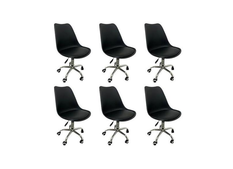 Kit 6 Cadeiras para Escritório Secretária Decorativa Eames Chicago Preto