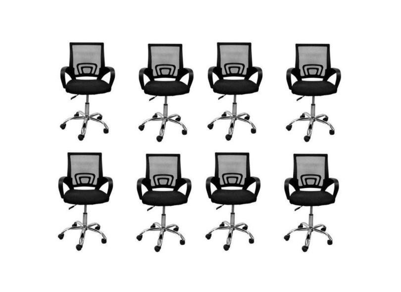 Kit 8 Cadeiras de Escritório Diretor Tela Mesh Base Cromada Santiago Rivatti Preto