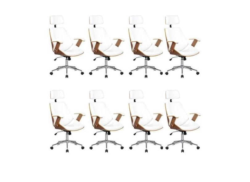 Kit 8 Cadeiras de Escritório Presidente Giratória com Apoia Cabeça Office Lisboa Branco