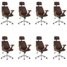 O menor preço encontrado no Brasil para Kit 8 Cadeiras de Escritório Presidente Giratória com Apoia Cabeça Office Lisboa Marrom atualmente é R$ 9.524,56.
