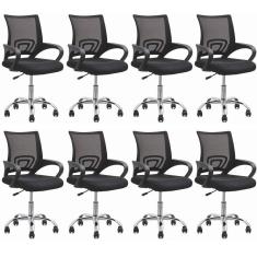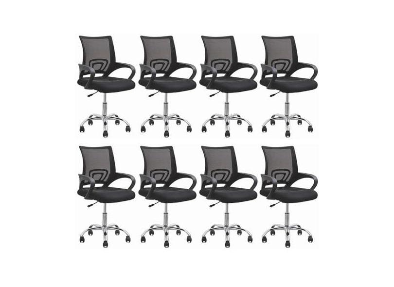 Kit 8 Cadeiras para Escritório Diretor Executivas Giratória Tela Mesh Preto