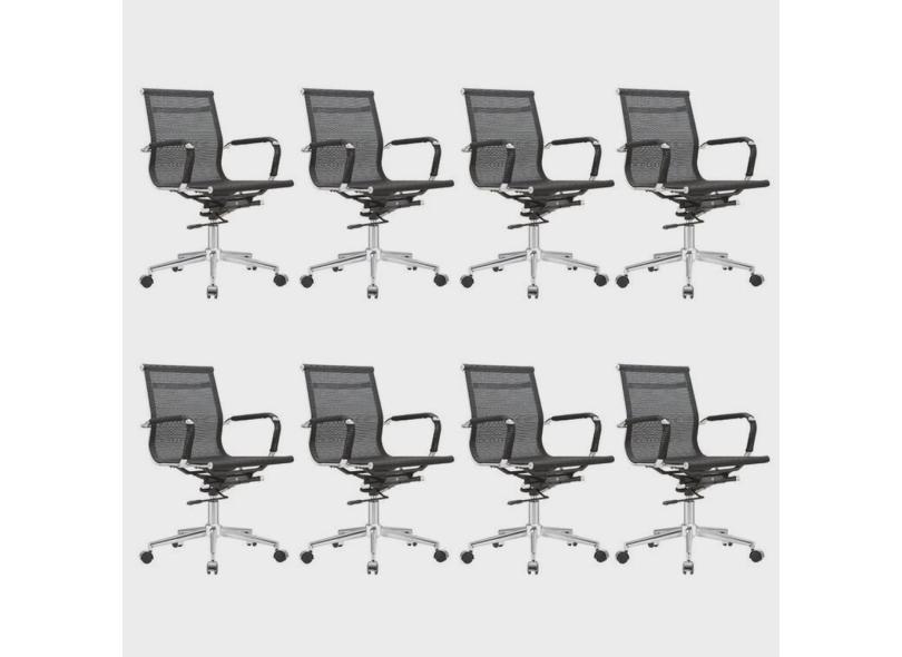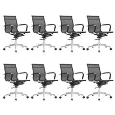 Kit 8 Cadeiras para Escritório Diretor Giratória Aço Cromado Sidney