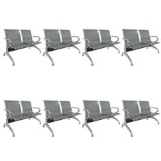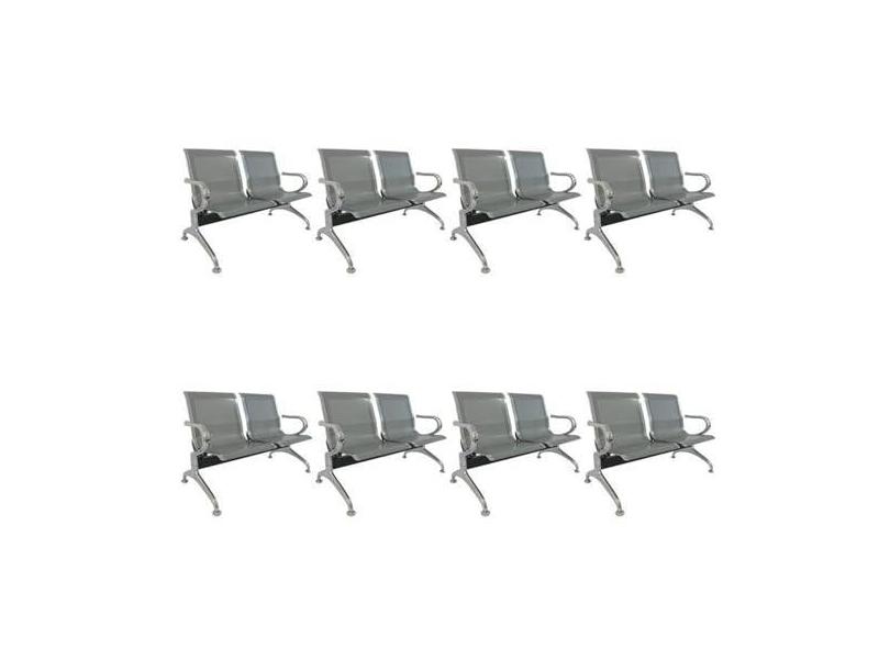 Kit 8 Cadeiras para Escritório Longarina 2 Lugares Dubai Cinza