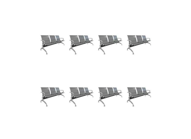 Kit 8 Cadeiras para Escritório Longarina 3 Lugares Dubai Cinza