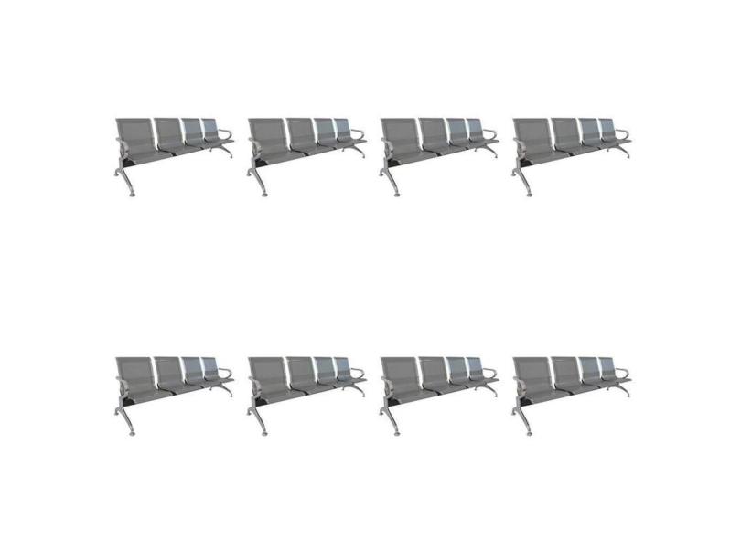Kit 8 Cadeiras para Escritório Longarina 4 Lugares Dubai Cinza
