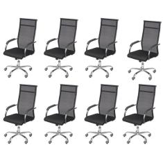Kit 8 Cadeiras para Escritorio Presidente Alta Roma 3312 Preto