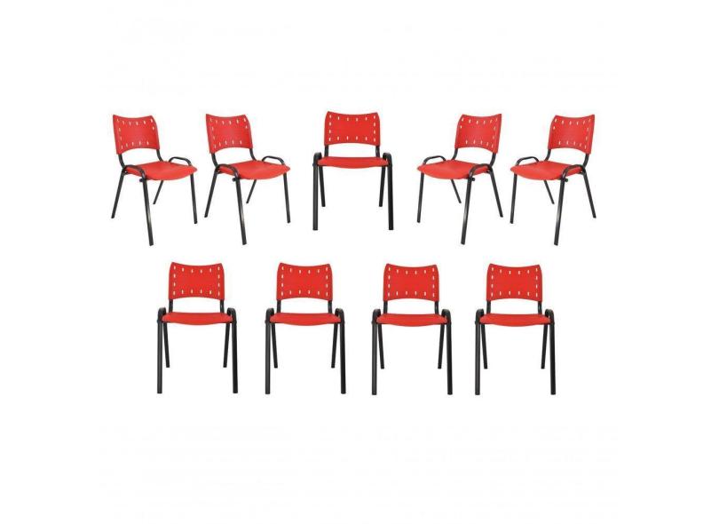 Kit 9 Cadeiras Iso Para Escola Escritório Comércio Vermelha Base Preta