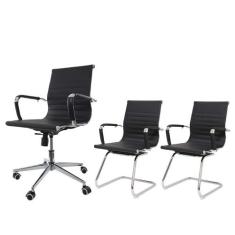 Kit Cadeira de Escritório Diretor Stripes + 2 Cadeiras de Escritório D