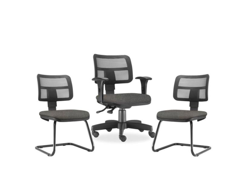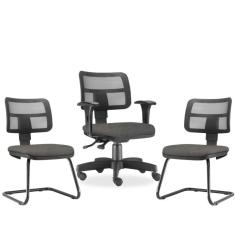 Kit Cadeira De Escritório E 2 Cadeiras Cinza Escuro