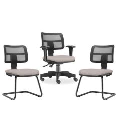 O menor preço encontrado no Brasil para Kit Cadeira De Escritório Giratória E 2 Cadeiras Bege atualmente é R$ 2.188,70.