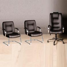 O menor preço encontrado no Brasil para Kit Cadeira Escritório Classic Preta - 1 Giratória + 2 Fixas atualmente é R$ 2.551,12.
