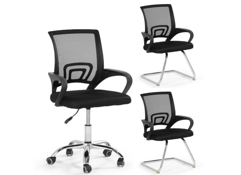 O menor preço encontrado no Brasil para Kit Cadeiras De Escritório 1 Secretária + 2 Fixa - Preto atualmente é R$ 807,49.