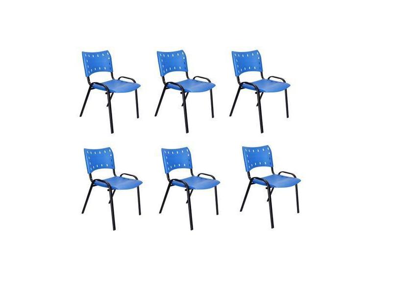 Kit Com 6 Cadeiras Iso Para Escola Escritório Comércio Azul Base Preta