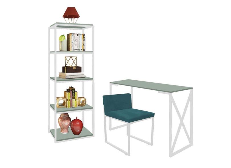 O menor preço encontrado no Brasil para Kit Escritório Bex 1 Cadeira Suede Azul Turquesa com 1 Mesa e 1 Livreiro Ferro Branco MDF Verde Oliva - Ahazzo Móveis atualmente é R$ 1.269,90.