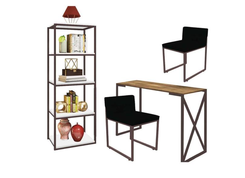 O menor preço encontrado no Brasil para Kit Escritório Bex 2 Cadeiras Corino Preto com 1 Mesa e 1 Livreiro Ferro Marrom MDF Caramelo - Ahazzo Móveis atualmente é R$ 1.749,90.