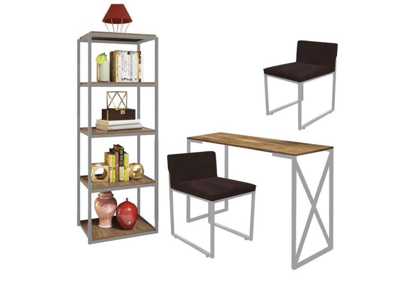 O menor preço encontrado no Brasil para Kit Escritório Bex 2 Cadeiras Sintético Marrom com 1 Mesa e 1 Livreiro Ferro Cinza MDF Carvalho - Ahazzo Móveis atualmente é R$ 1.749,90.