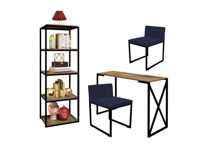 O menor preço encontrado no Brasil para Kit Escritório Bex 2 Cadeiras Suede Azul Marinho com 1 Mesa e 1 Livreiro Ferro Preto MDF Caramelo - Ahazzo Móveis atualmente é R$ 1.749,90.