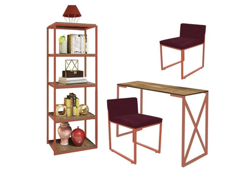 O menor preço encontrado no Brasil para Kit Escritório Bex 2 Cadeiras Suede Bordô com 1 Mesa e 1 Livreiro Ferro Bronze MDF Carvalho - Ahazzo Móveis atualmente é R$ 1.749,90.