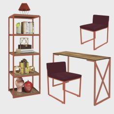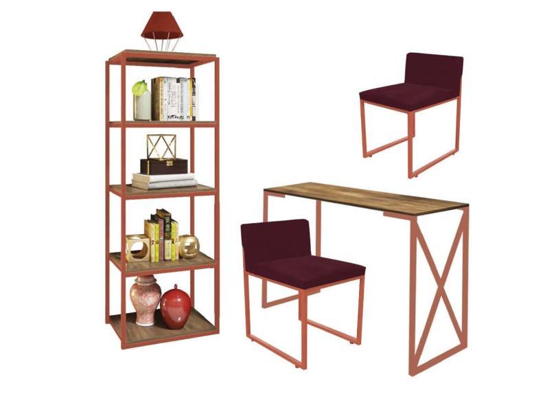 O menor preço encontrado no Brasil para Kit Escritório Bex 2 Cadeiras Suede Bordô com 1 Mesa e 1 Livreiro Ferro Bronze MDF Imbuia - Ahazzo Móveis atualmente é R$ 1.749,90.
