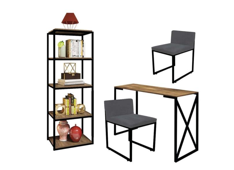 O menor preço encontrado no Brasil para Kit Escritório Bex 2 Cadeiras Suede Cinza com 1 Mesa e 1 Livreiro Ferro Preto MDF Imbuia - Ahazzo Móveis atualmente é R$ 1.749,90.