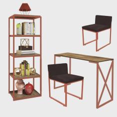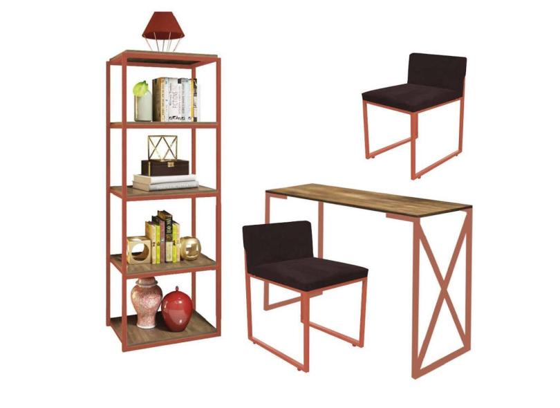 O menor preço encontrado no Brasil para Kit Escritório Bex 2 Cadeiras Suede Marrom com 1 Mesa e 1 Livreiro Ferro Bronze MDF Freijó - Ahazzo Móveis atualmente é R$ 1.749,90.