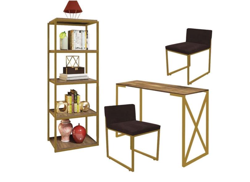 O menor preço encontrado no Brasil para Kit Escritório Bex 2 Cadeiras Suede Marrom com 1 Mesa e 1 Livreiro Ferro Dourado MDF Freijó - Ahazzo Móveis atualmente é R$ 1.749,90.