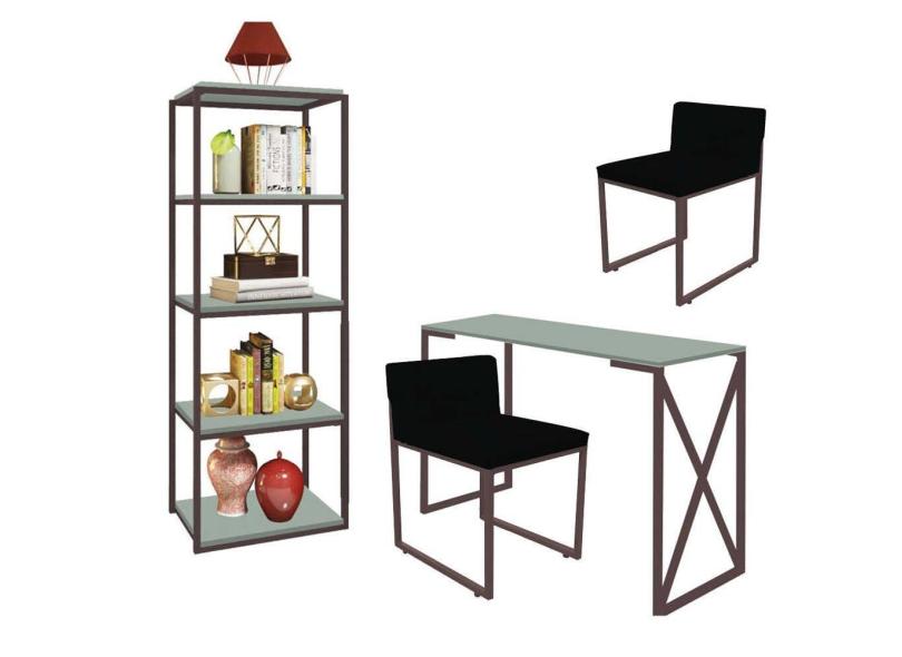 O menor preço encontrado no Brasil para Kit Escritório Bex 2 Cadeiras Suede Preto com 1 Mesa e 1 Livreiro Ferro Marrom MDF Verde Oliva - Ahazzo Móveis atualmente é R$ 1.609,90.