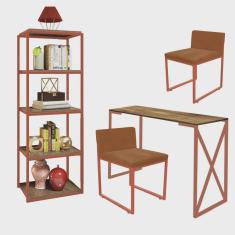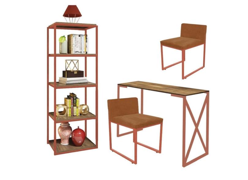 O menor preço encontrado no Brasil para Kit Escritório Bex 2 Cadeiras Suede Terracota com 1 Mesa e 1 Livreiro Ferro Bronze MDF Freijó - Ahazzo Móveis atualmente é R$ 1.749,90.
