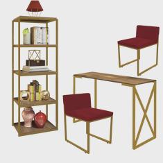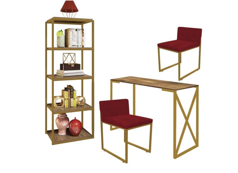 O menor preço encontrado no Brasil para Kit Escritório Bex 2 Cadeiras Suede Vermelho com 1 Mesa e 1 Livreiro Ferro Dourado MDF Carvalho - Ahazzo Móveis atualmente é R$ 1.749,90.