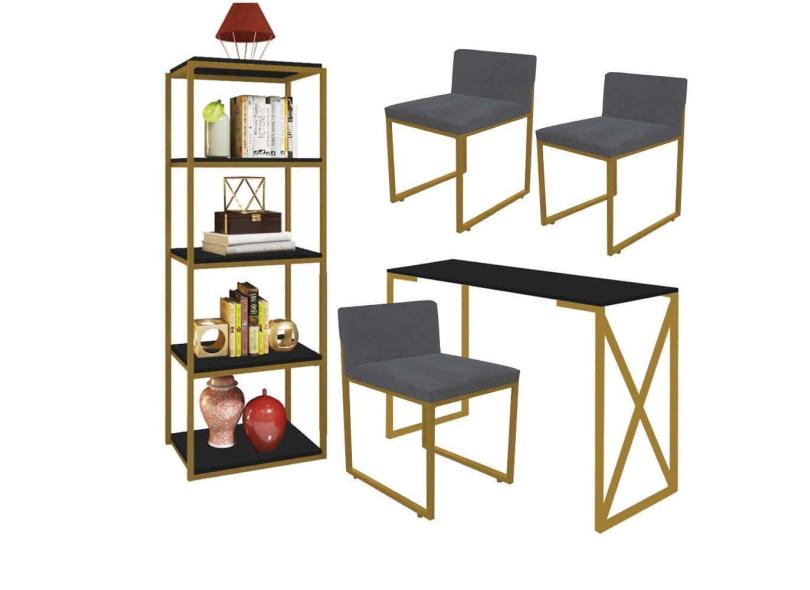 O menor preço encontrado no Brasil para Kit Escritório Bex 3 Cadeiras Suede Cinza com 1 Mesa e 1 Livreiro Ferro Dourado MDF Preto - Ahazzo Móveis atualmente é R$ 1.949,90.