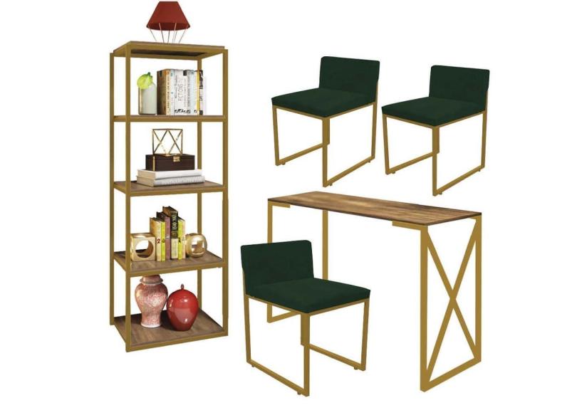 O menor preço encontrado no Brasil para Kit Escritório Bex 3 Cadeiras Suede Verde com 1 Mesa e 1 Livreiro Ferro Dourado MDF Carvalho - Ahazzo Móveis atualmente é R$ 2.089,90.