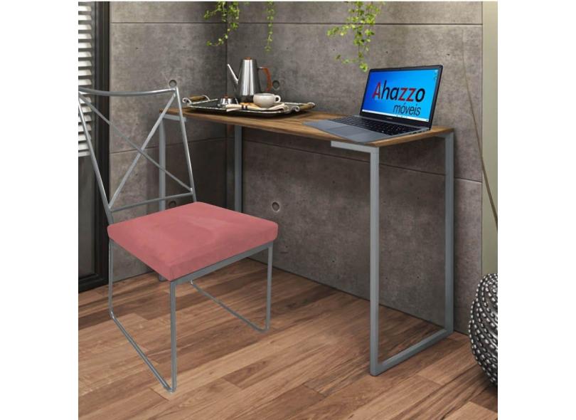 Kit Escritório Clark Cadeira e Mesa Industrial Ferro Cinza Tampo MDF Castanho Suede Rose Gold - Ahz Móveis