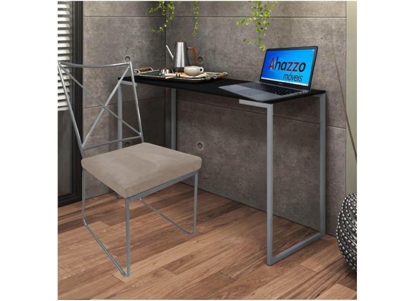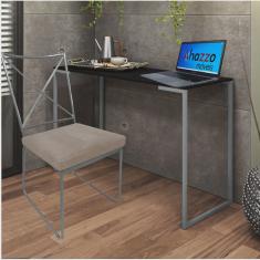 Kit Escritório Clark Cadeira e Mesa Industrial Ferro Cinza Tampo MDF Preto Corino Bege - Ahz Móveis