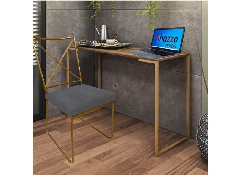 Kit Escritório Clark Cadeira e Mesa Industrial Ferro Dourado Tampo MDF Rústico Corino Cinza - Ahz Móveis