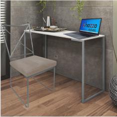 Kit Escritório Clark Cadeira e Mesa Industrial Ferro Prata Tampo MDF Branco Sintético Bege - Ahz Móveis