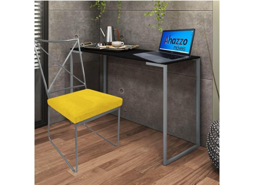Kit Escritório Clark Cadeira e Mesa Industrial Ferro Prata Tampo MDF Preto Sintético Amarelo - Ahz Móveis