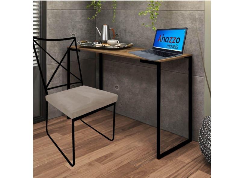 Kit Escritório Clark Cadeira e Mesa Industrial Ferro Preto Tampo MDF Ambar Corino Bege - Ahz Móveis
