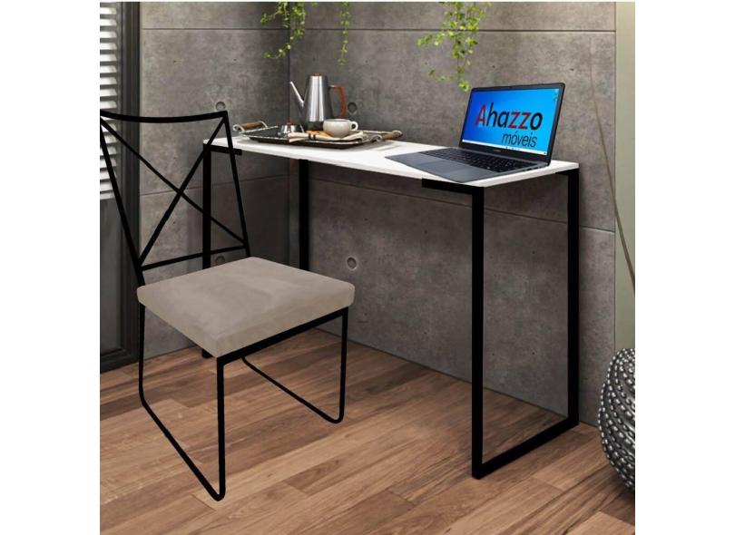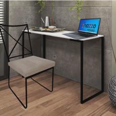 Kit Escritório Clark Cadeira e Mesa Industrial Ferro Preto Tampo MDF Branco Sintético Bege - Ahz Móveis