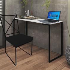 Kit Escritório Clark Cadeira e Mesa Industrial Ferro Preto Tampo MDF Branco Suede Preto - Ahz Móveis