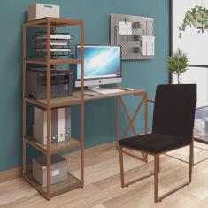 O menor preço encontrado no Brasil para Kit Escritório Mesa Max BeX 5 Prateleiras e Cadeira Stan Bronze Tampo Caramelo Sintético Marrom - Ahz Móveis atualmente é R$ 1.079,90.