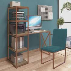O menor preço encontrado no Brasil para Kit Escritório Mesa Max BeX 5 Prateleiras e Cadeira Stan Bronze Tampo Carvalho Suede Azul Turquesa - Ahz Móveis atualmente é R$ 1.079,90.