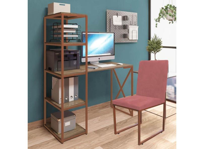 O menor preço encontrado no Brasil para Kit Escritório Mesa Max BeX 5 Prateleiras e Cadeira Stan Bronze Tampo Madeira Suede Rose Gold - Ahz Móveis atualmente é R$ 1.079,90.