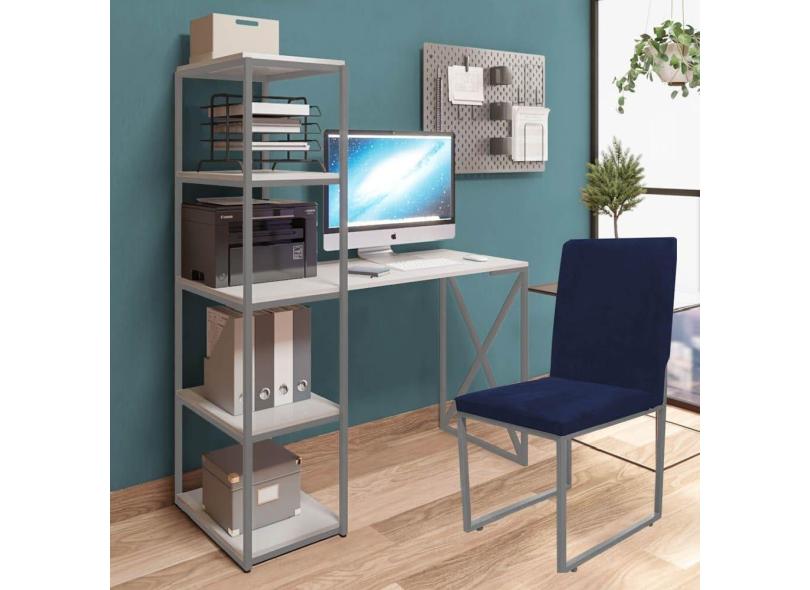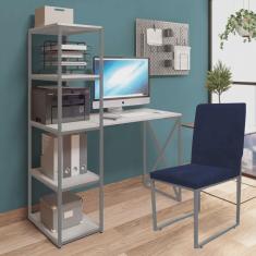 O menor preço encontrado no Brasil para Kit Escritório Mesa Max BeX 5 Prateleiras e Cadeira Stan Cinza Tampo Branco Sintético Azul Marinho - Ahz Móveis atualmente é R$ 1.079,90.