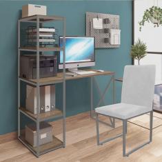 O menor preço encontrado no Brasil para Kit Escritório Mesa Max BeX 5 Prateleiras e Cadeira Stan Prata Tampo Caramelo Corino Branco - Ahz Móveis atualmente é R$ 1.079,90.