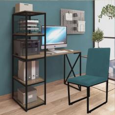 O menor preço encontrado no Brasil para Kit Escritório Mesa Max BeX 5 Prateleiras e Cadeira Stan Preto Tampo Caramelo Suede Azul Turquesa - Ahz Móveis atualmente é R$ 1.079,90.