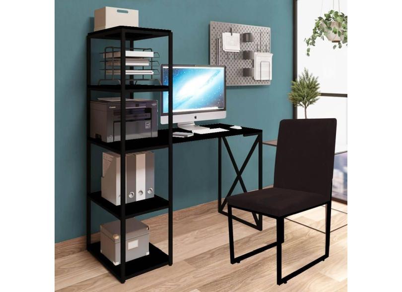 Kit Escritório Mesa Max BeX 5 Prateleiras e Cadeira Stan Preto Tampo Preto Sintético Marrom - Ahz Móveis