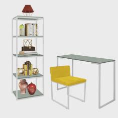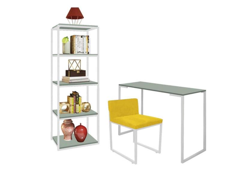 O menor preço encontrado no Brasil para Kit Escritório Ravi 1 Cadeira Suede Amarelo com 1 Mesa e 1 Livreiro Ferro Branco MDF Verde Oliva - Ahazzo Móveis atualmente é R$ 1.229,90.
