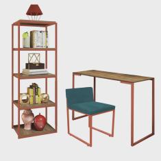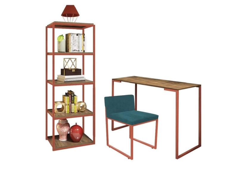 O menor preço encontrado no Brasil para Kit Escritório Ravi 1 Cadeira Suede Azul Turquesa com 1 Mesa e 1 Livreiro Ferro Bronze MDF Carvalho - Ahazzo Móveis atualmente é R$ 1.369,90.