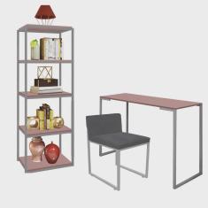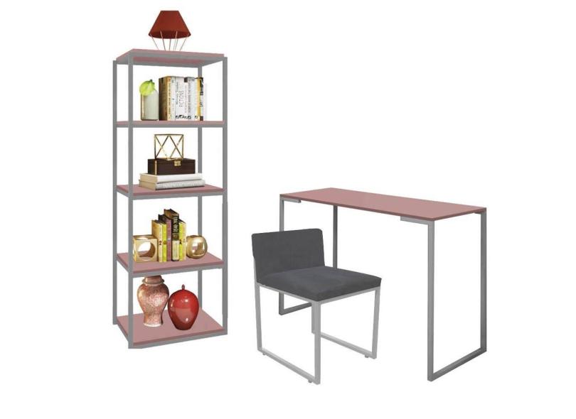 O menor preço encontrado no Brasil para Kit Escritório Ravi 1 Cadeira Suede Cinza com 1 Mesa e 1 Livreiro Ferro Cinza MDF Rose Rosa - Ahazzo Móveis atualmente é R$ 1.379,90.