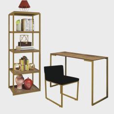 O menor preço encontrado no Brasil para Kit Escritório Ravi 1 Cadeira Suede Preto com 1 Mesa e 1 Livreiro Ferro Dourado MDF Malbec - Ahazzo Móveis atualmente é R$ 1.369,90.